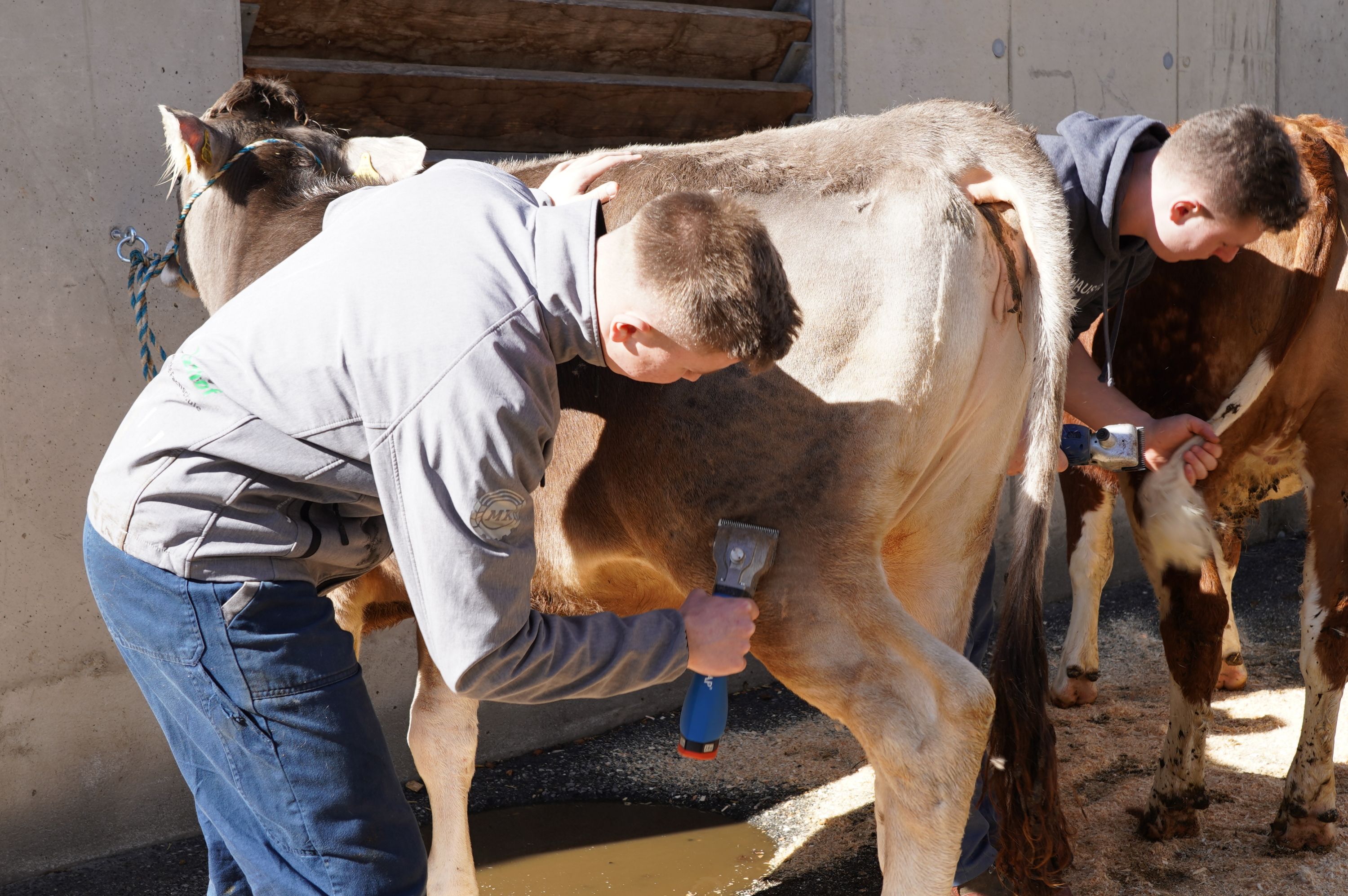 Ganz nach dem Motto „learning by doing“ wurden in 2er- und 3er-Teams Kalbinnen gewaschen, geschoren, gestylt und vorgeführt. Neben den Vorführrichtlinien konnten sich die Jüngeren unter ihnen praktische Tipps und Tricks von den erfahrenen JungzüchterInnen mit nach Hause nehmen.