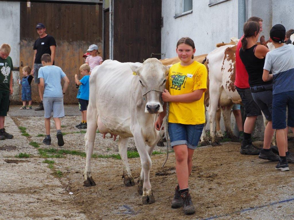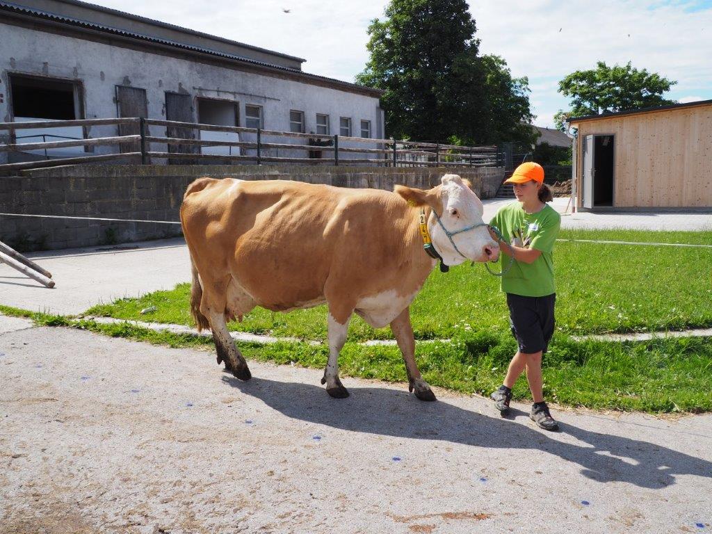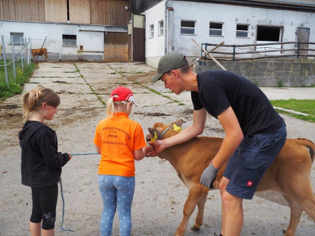 Nach einer kurzen Führung am Edelhofer Schulgelände, übten die Teilnehmer tatkräftig das richtige Anlegen und Fixieren eines Strickhalfters bei Rindern. Anschließend stand das Waschen, Scheren, „Stylen“ und Führen von den Kälbern bzw. Kalbinnen am Programm. Im Zuge einer Rätselrallye konnten die Nachwuchszüchter ihr landwirtschaftliches Wissen unter Beweis stellen. Großen Spaß hatten die Kinder beim Bemalen einer Porzellankuh, dabei konnten sie ihre Kreativität freien Lauf lassen. Die Kids wurden von den Betreuern, alle erfahrene Jungzüchter, tatkräftig unterstützt.