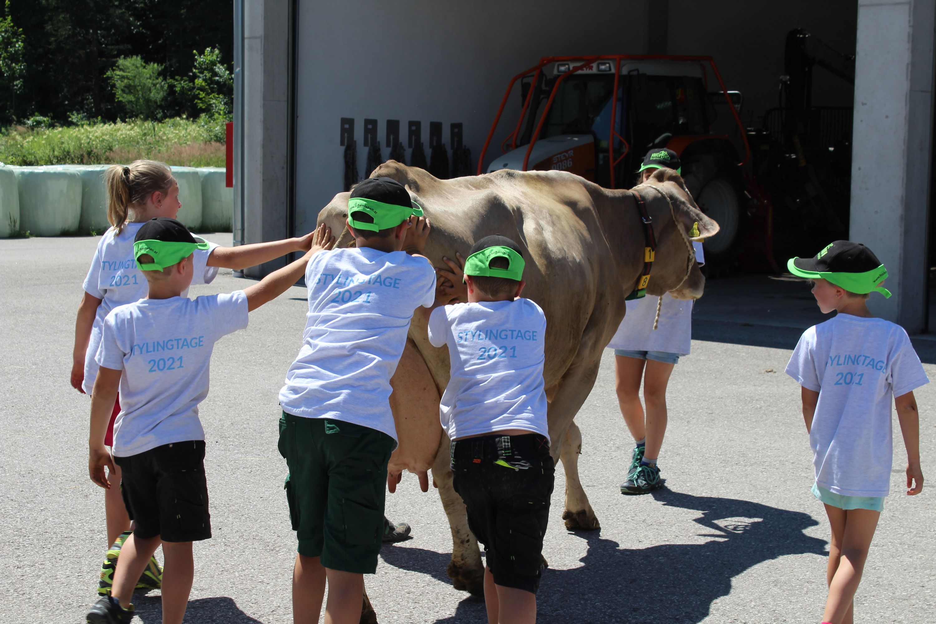 In Dreierteams mussten die Kinder ihre Kälber und Kühe vormittags waschen und scheren und am Nachmittag wurde vorgeführt. Zwischendurch gab es immer wieder Trinkpausen im Schatten, Spiele und natürlich ein Mittagessen im Schloss Hohenlehen. Am Ende des Tages gab es eine großartige Erfrischung in der Ybbs für Mensch und Tier.