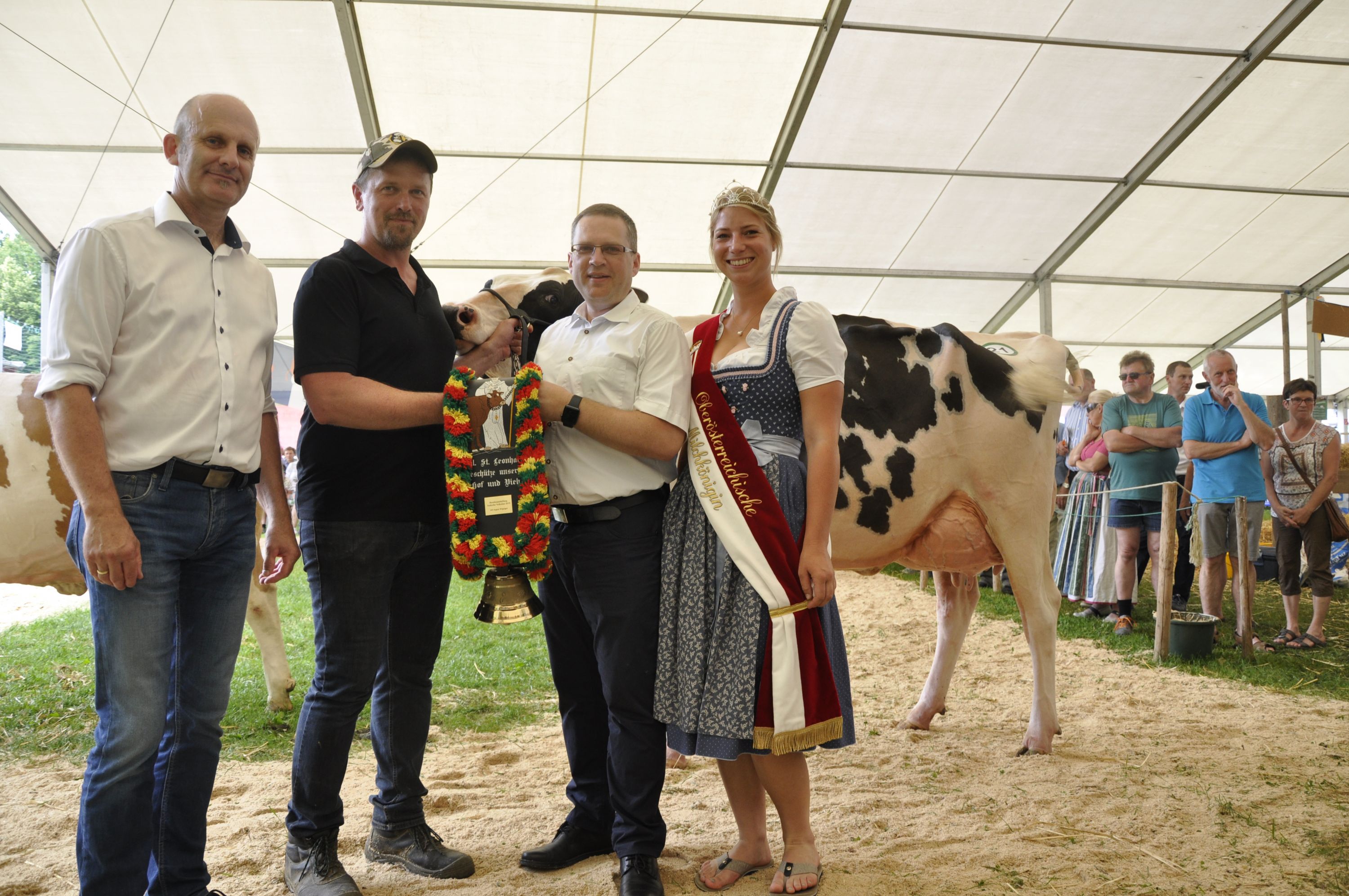 Am Vormittag richteten die beiden Preisrichter, Martin Mosandl aus Bayern die Rasse Fleckvieh und Georg Schaubmair aus Niederösterreich die Rasse Holstein, gekonnt die Ausstellungstiere. Gelobt wurde von beiden Preisrichtern die hervorragende Qualität der präsentierten Tiere. Fast ein wenig verliebt, hat sich Preisrichter Mosandl in die Riaza-Tochter Sambucca vom Betrieb der Familie Schmidseder aus Enzenkirchen. So war es keine Überraschung, dass Sambucca, welche durch ein makelloses Fundament und ein sehr lebhaftes Euter überzeugte, zur Miss Andorf und somit zur schönsten Fleckviehkuh der Ausstellung gekürt wurde. Nicht anders, erging es dem Preisrichter Schaubmair mit der Holstein Kuh Regatta vom Betrieb der Familie Großpötzl aus Sigharting. Auch sie wurde zur Miss Andorf der Rasse Holstein gewählt.