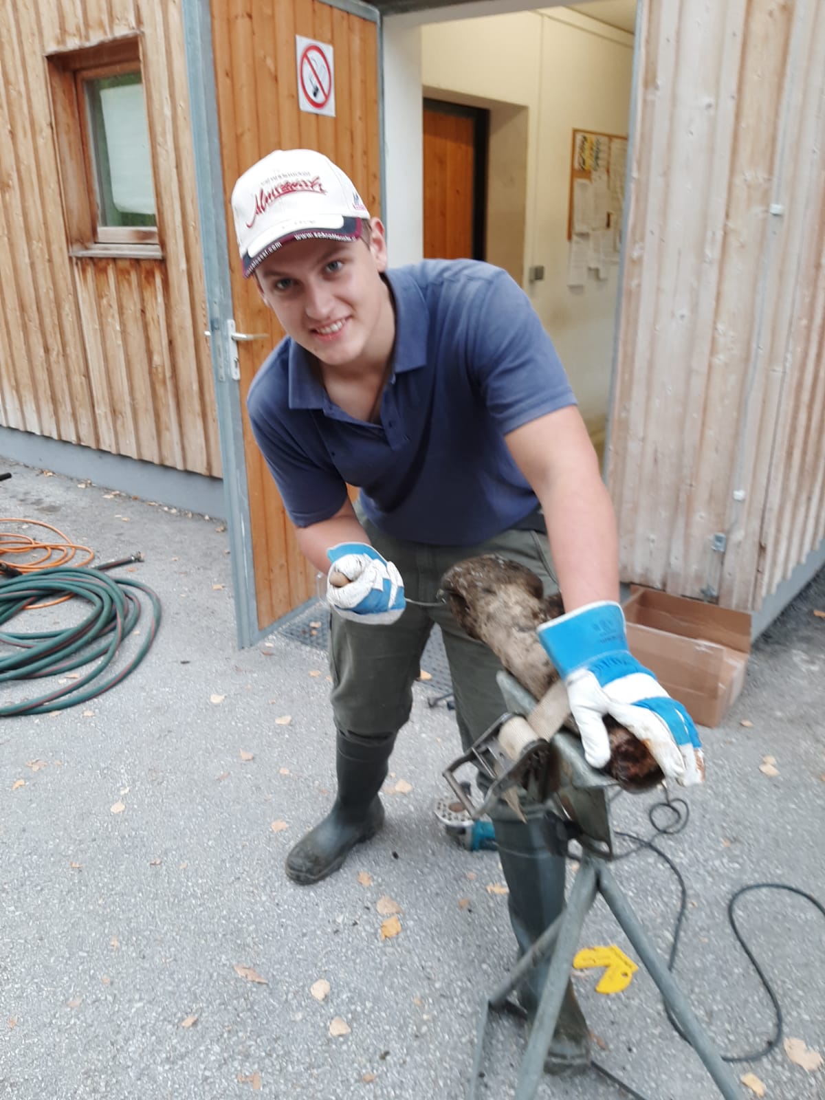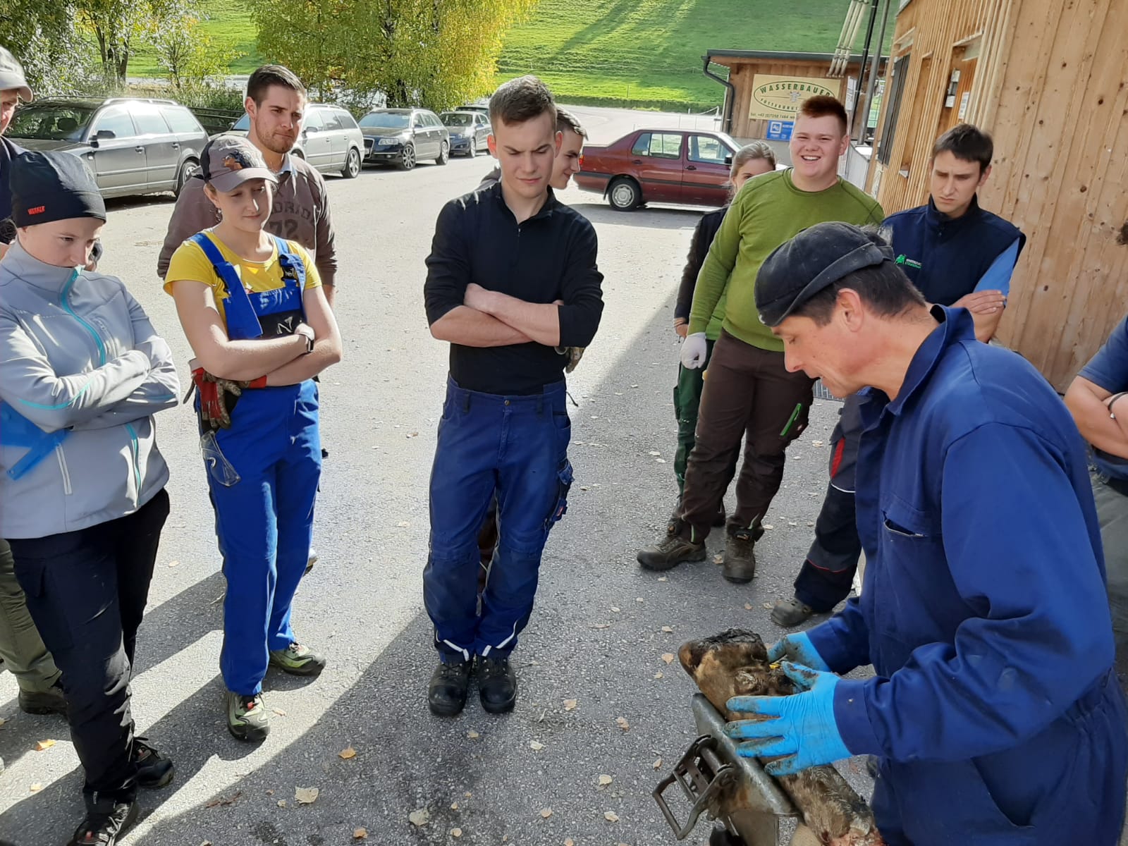 Damit das theoretische Wissen gefestigt und auf den Betrieben zuhause umgesetzt werden kann, durften die Jungzüchterprofis unter fachlicher Anleitung von Robert Pesenhofer an einer lebenden Kuh trainieren. Mit Hilfe von Schlachtprägeraten konnten die Jungzüchterinnen und Jungzüchter testen wie tief geschnitten werden darf und wie das Innenleben einer Klaue aussieht.
